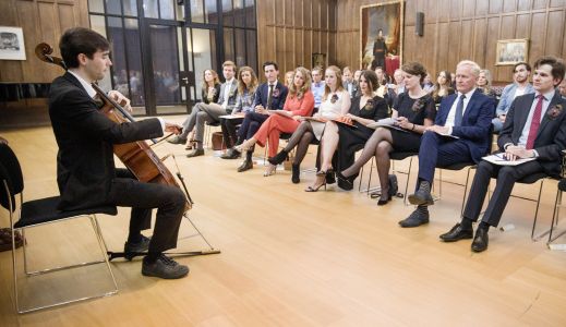 Elk nieuwe wetgevings- en overheidsjurist werd door de rector persoonlijk toegesproken. De rector heeft erbij niet alleen de Eindopdrachten van elke trainee toegelicht, maar ook de vele andere (niet-juridische) talenten van hen genoemd. Het zijn allemaal gedreven mensen die veel gedaan krijgen op allerlei fronten. Muzikaal talent was ook aanwezig: als bewijs daarvan speelde Daan Borman de prachtige prelude uit Bachs zesde suite voor cello.